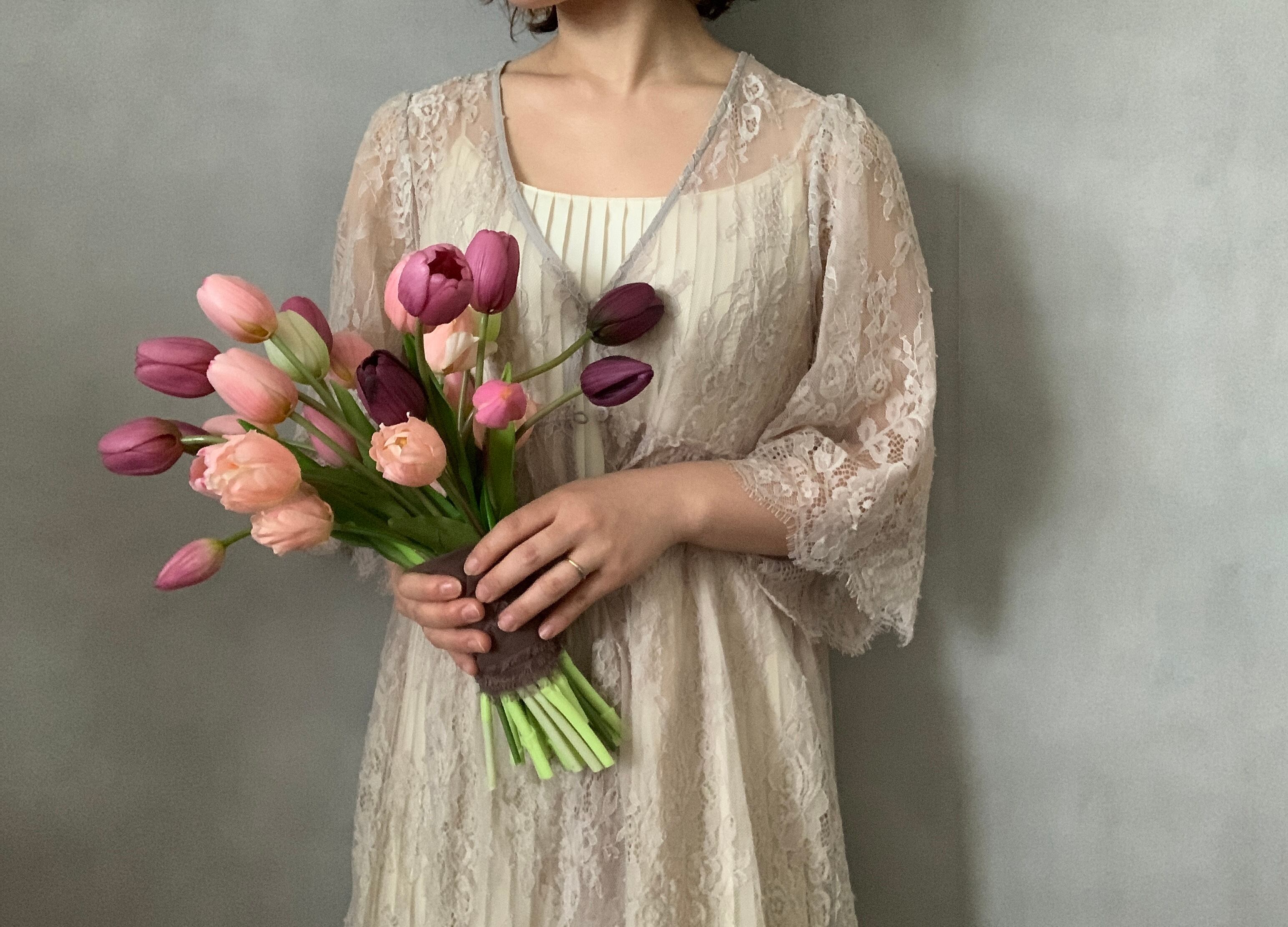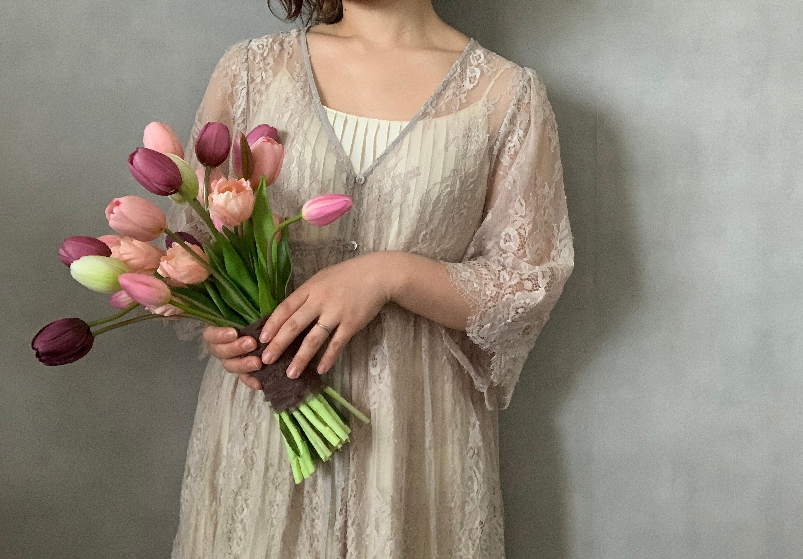 チューリップだけの、シンプルで愛らしいブーケ。