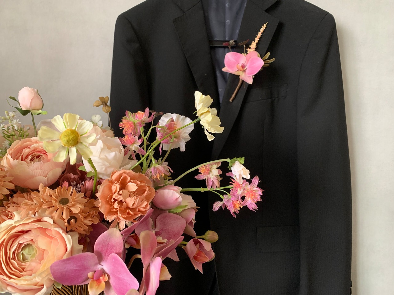 Bouquet of cosmos and phalaenopsis orchid