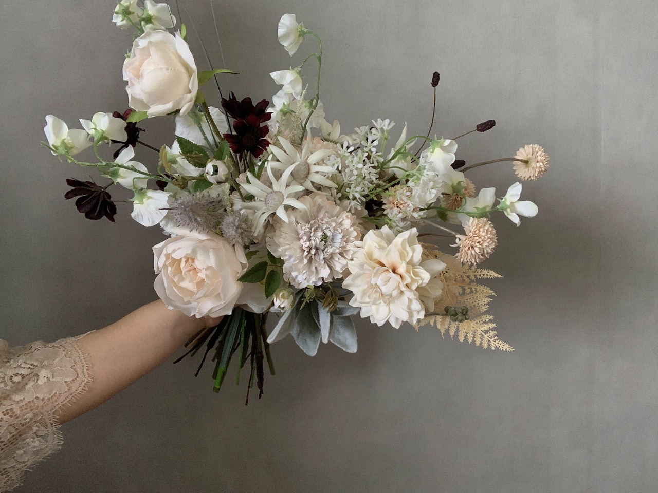 大人な雰囲気のホワイトブーケです。