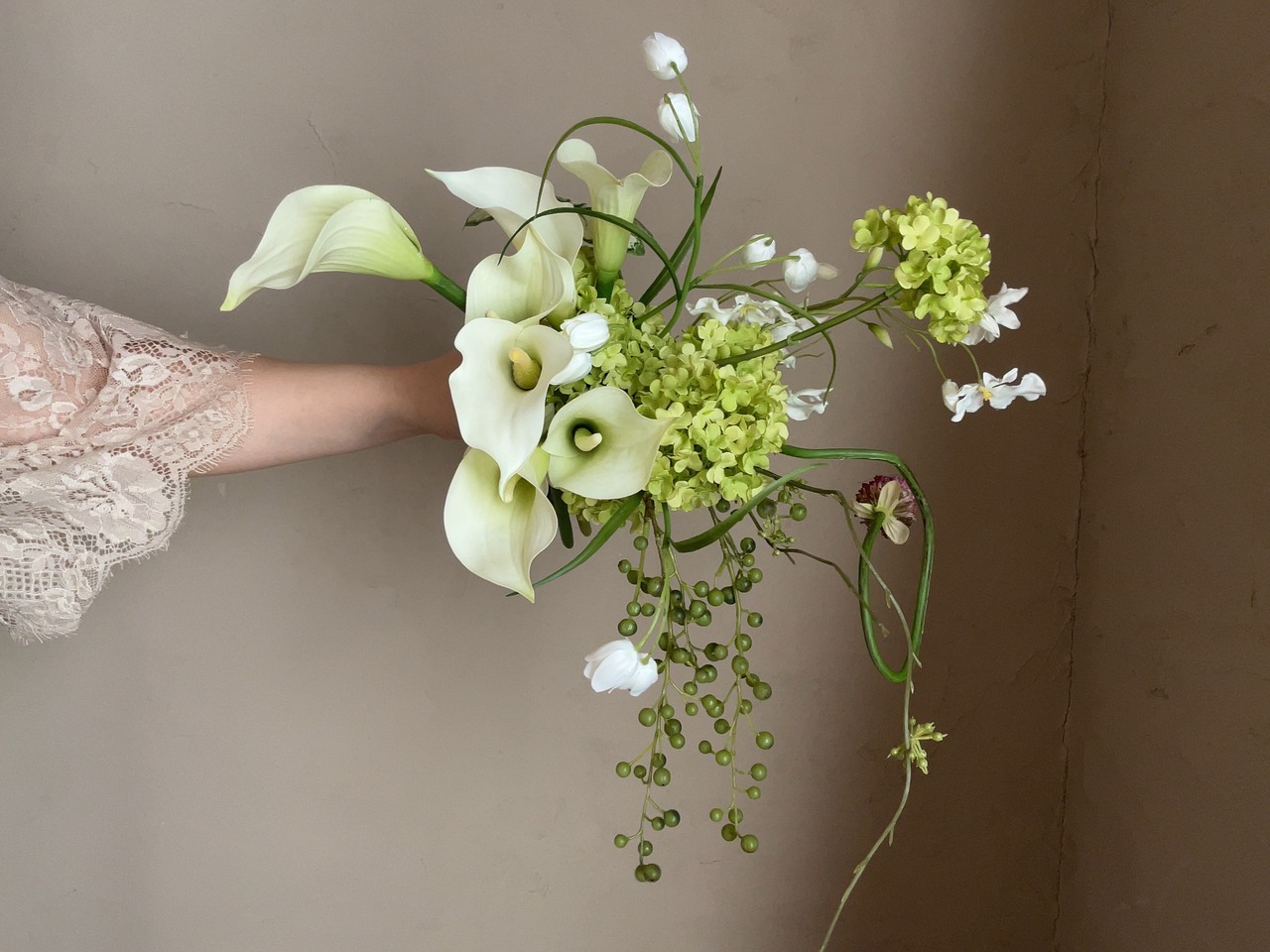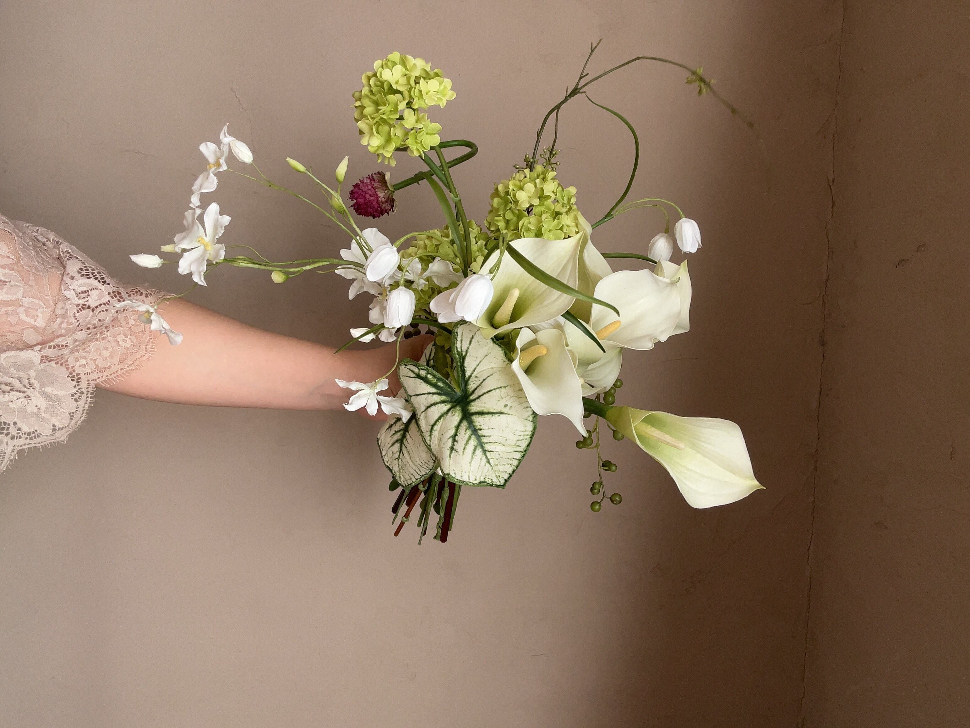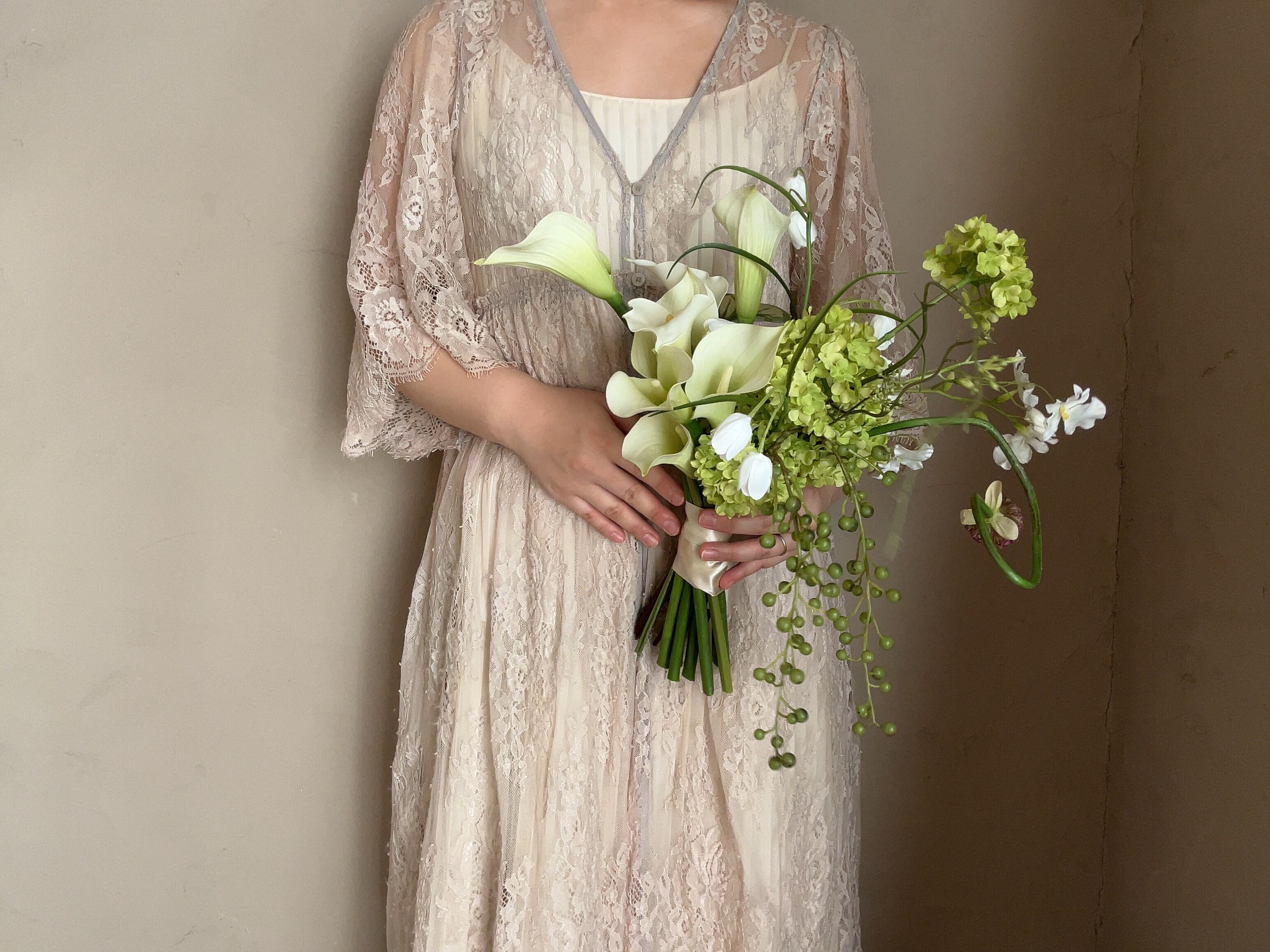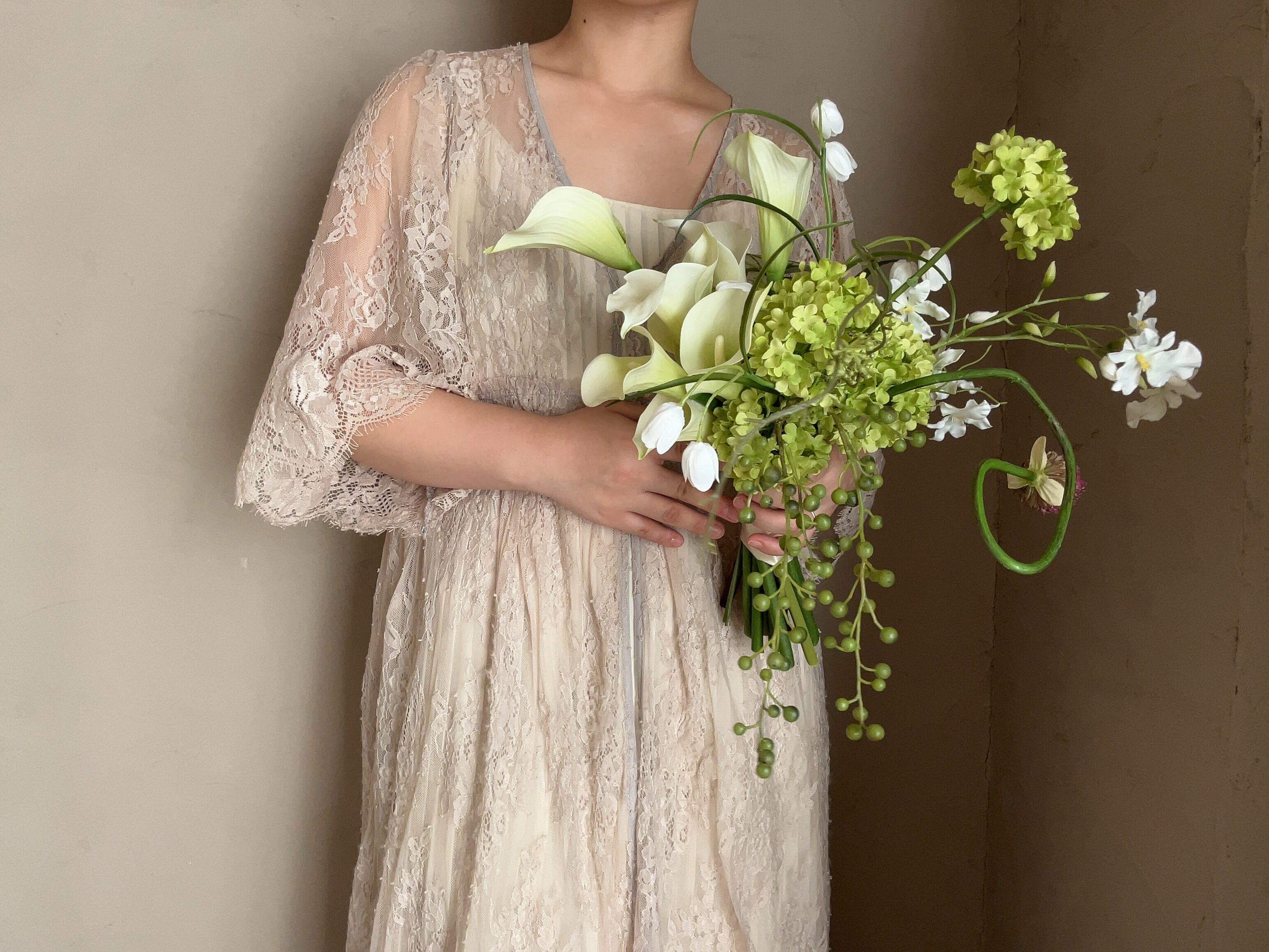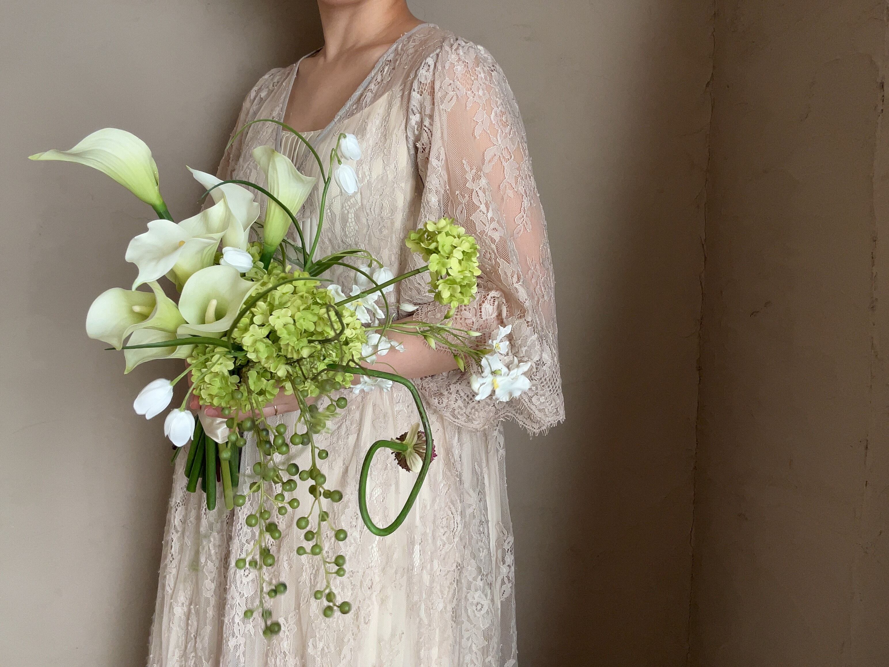 楽しげなグリーンのブーケ。
